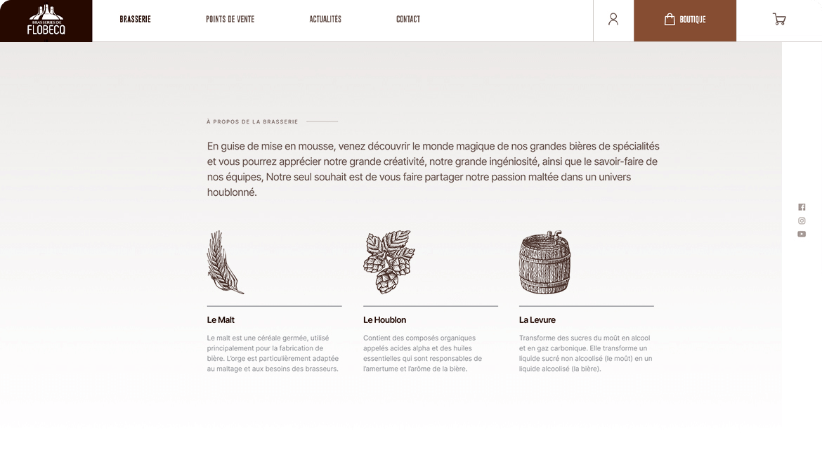 Le site web reflète le sentiment d'authenticité et met en évidence l’héritage ancestral de la brasserie. Plus important encore, la boutique et les informations utiles sont facilement accessibles depuis n’importe quel appareil (Smartphone, tablette, ordinateur).