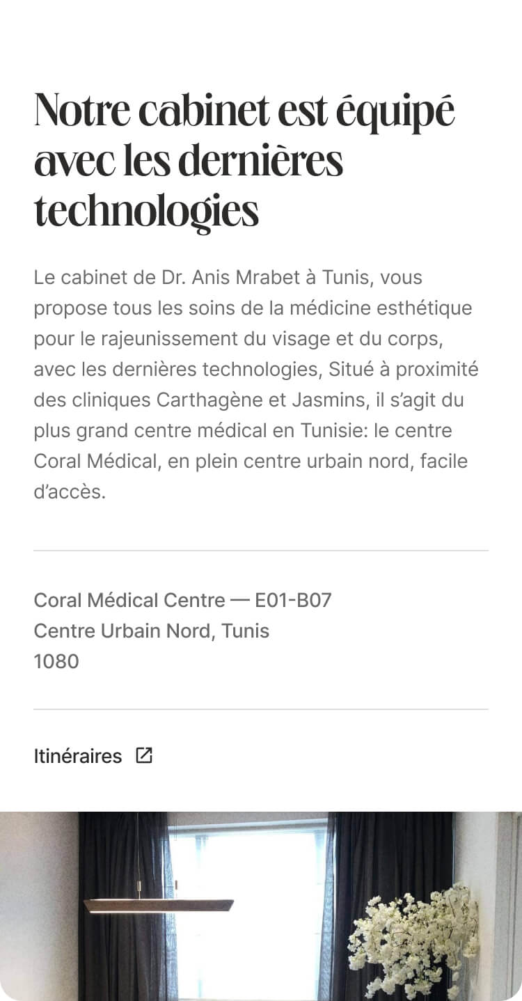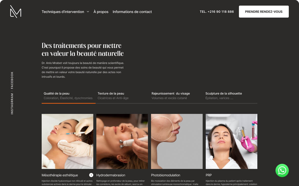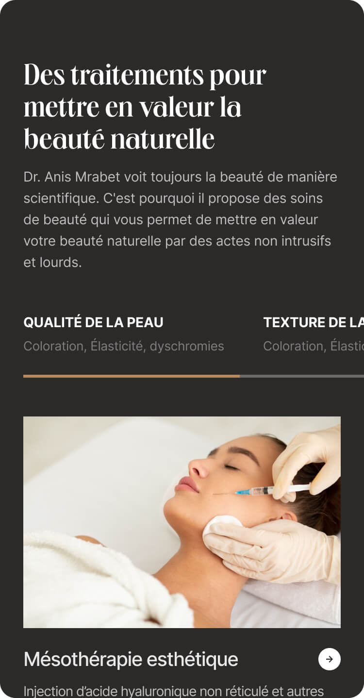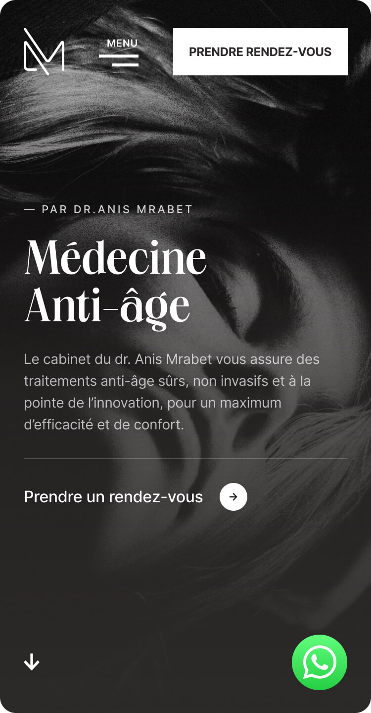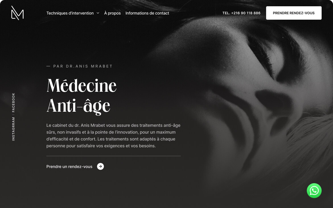 Le cabinet du Dr. Anis MRABET, spécialisé en médecine anti-âge, nous a confié la création d'un site web dynamique incluant des services de branding, de design UX/UI et développement sur WordPress.